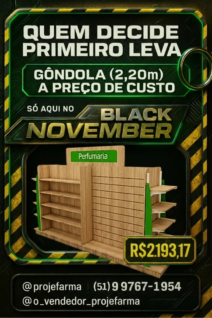 - Móveis para farmácias, drogarias, perfumarias e pequenos negócios;